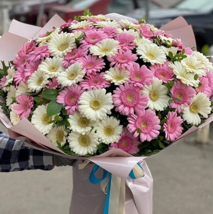 Букет из 101 белой и розовой герберой | Купить в Никосию (Кипр)