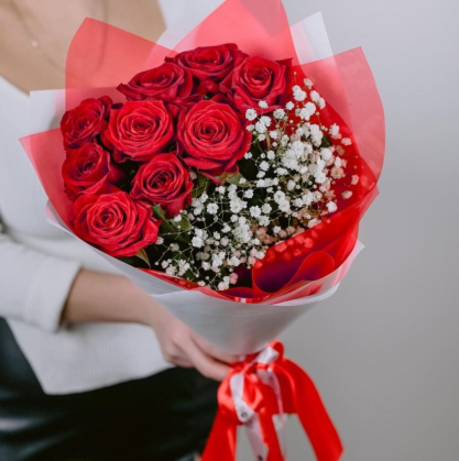 Букет из красных роз и гипсофилы | Купить в Никосию (Кипр)