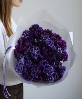 - Богатая палитра: Мы предлагаем эустому в широком спектре оттенков: от классического белого и нежно-розового до насыщенного фиолетового и сиреневого.